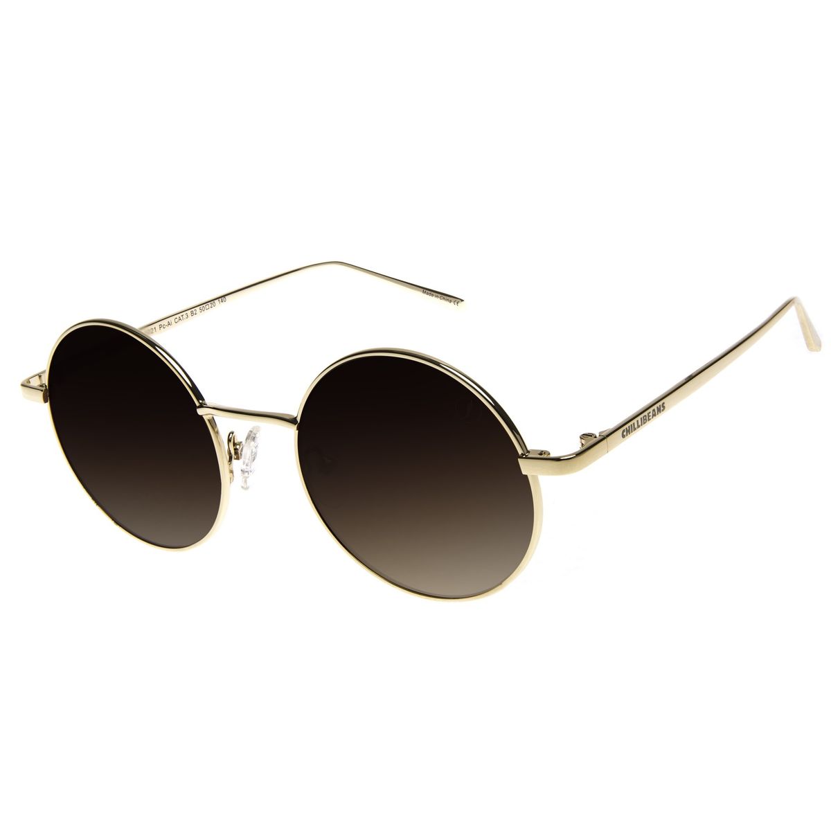 Óculos de Sol Feminino Ótica Chilli Beans Redondo Slim Dourado, feito em aço inoxidável leve e resistente. As lentes possuem proteção 100% contra raios UVA e UVB, protegendo seus olhos dos raios nocivos do sol reduzindo o risco de desenvolvimento das doenças oculares. Ponte reta com apoio nasal em silicone e hastes com assinatura Chilli Beans. Ref.: OC.MT.3366.0221 |